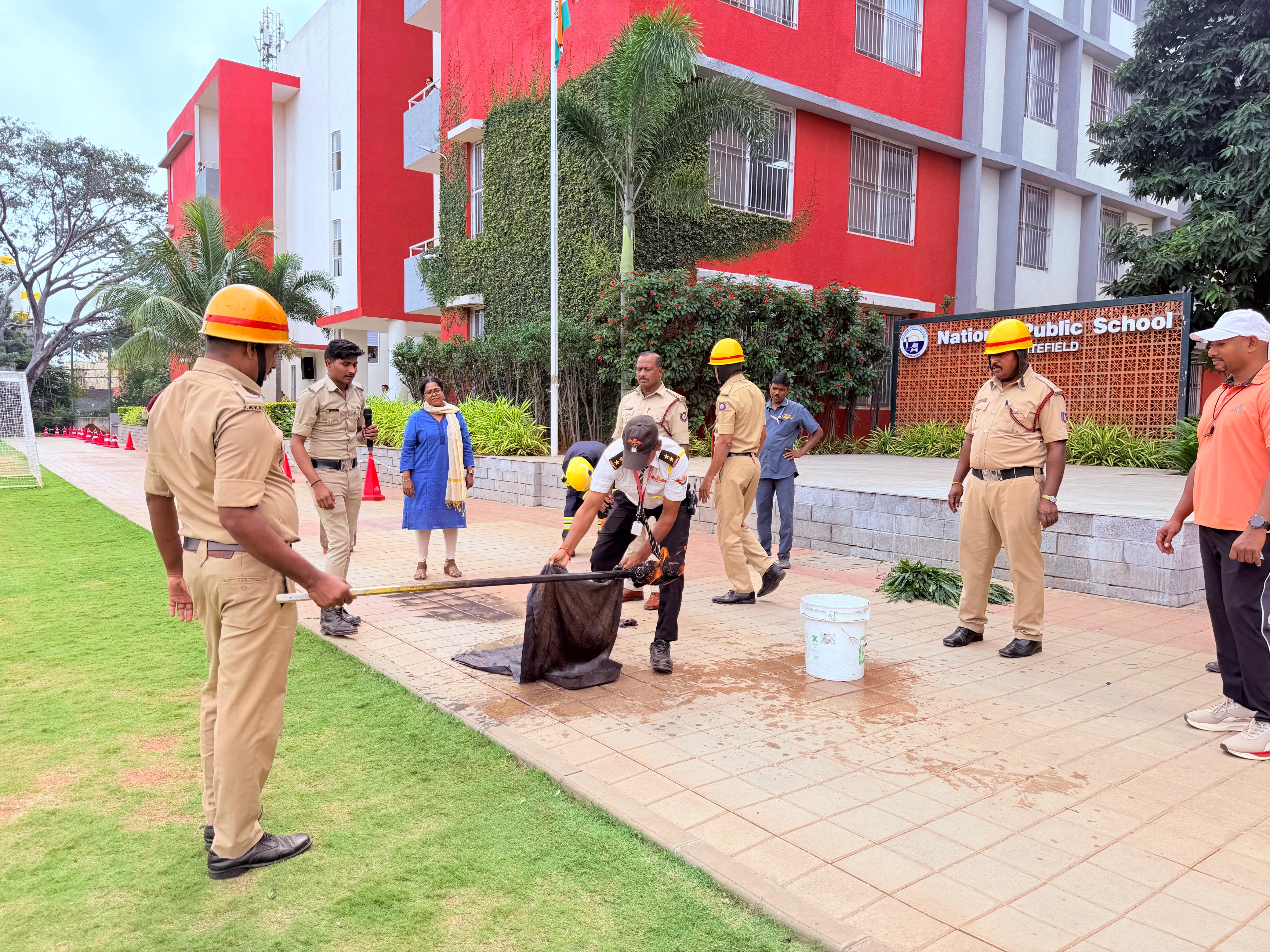 A Fire Safety Awareness Drill was organised for students of Classes 5 to 9 in collaboration with the Fire Safety Department, ITPL Whitefield. The session commenced with an informative talk explaining the fire triangle — heat, fuel, and oxygen — and how removing any one of these elements can stop a fire.